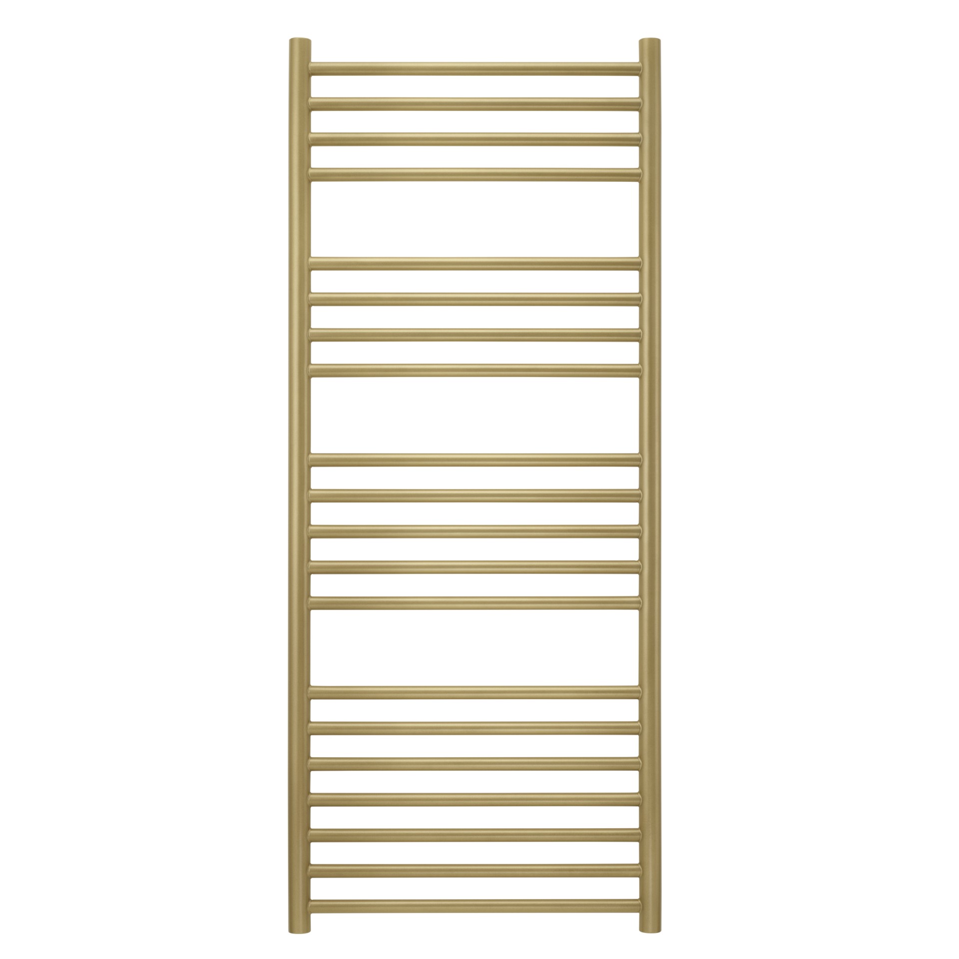 Crafted from 100% stainless steel, and finished in Brushed Brass, the Sussex towel rail is designed to last a lifetime. All of our rails can replace the existing radiator in the bathroom and provide a stunning modern look with plenty of space to dry and warm towels. Each rail is manufactured with standard 1/2” BSP tappings and is pressure tested to 12 Bar. Our rails are suitable for all plumbing systems including open systems. BTU/Watt figures are based on T=60K. We recommend that all plumbing work is carried out by a qualified plumber.